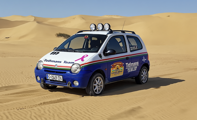 A csapat nem egy terepjárót, hanem egy öreg Renault Twingót választott társául. A döntés elsőre merésznek tűnhet, de ők hisznek benne, hogy Twini bírni fogja a sivatagot és a dzsungelt.