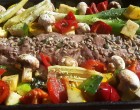 A zöldségeket grillzöldség keverékkel beszórom és abban állni hagyom. Így engednek annyi levet, hogy nem is kell alá vizet önteni, grill sajtot is lehet tenni mellé kockázva nálunk imádják.