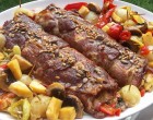 Fóliával feltekerjük így szépen becsomagolva és legalább egy órát sütjük. Utána mellétesszük a zöldségeket, a fóliát levesszük ahol a zsiradék kisülése miatt repedés féle keletkezik a husinkon, meghintjük magvakkal, melyek megpirulva egy nagyon kellemes ízt adnak ennek a mennyei ételnek.