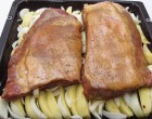 Megsózzuk, kevés borsot teszünk rá, majd a tetejére tesszük a bepácolt oldalast. (Ha van rá idő, előző éjszaka kenjük be az oldalast, mert akkor még jobban átjárják az ízek.)
