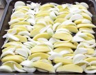 Közben a krumplit megtisztítjuk, és a tepsibe sorakoztatjuk. A krumpli hasábok közé negyedelt hagymát teszünk.