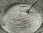 a fokhagymás kapros tejfölös öntetet amit majd a tepsiben lévő hús tetejére kenünk.