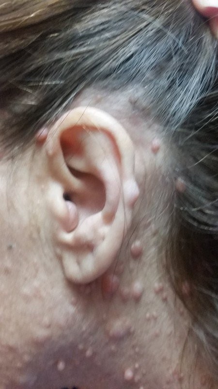 Betegségét tájékoztató szándékkal hozta nyilvánosságra. A dudorok krónikus fájdalmakat okoznak, de a nő reménykedik, hogy a GoGundMe oldalon összegyűjtött pénzzel egy műtétben részesülhet, amely révén több 100 dudort eltávolítanának.