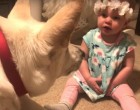 Bár a kutya jóval nagyobb volt, mint ő, ez egyáltalán nem feszélyezte a kislányt, aki nem riadt vissza attól, hogy a kutya közelébe menjen és megszeretgesse. Ez is nagyon aranyos volt, de a videó igazán népszerű amiatt lett, ahogy a kutya reagált.