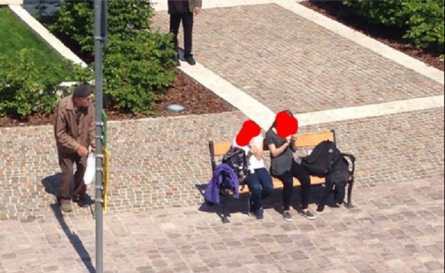 Iskolám ablakából rálátok egy buszmegállóra. Ott ül két fiatal, kb. 12-13 eves lány a padon. Terpeszkednek, hogy még véletlenül se legyen hely a padon. A pad mellett álldogál egy idős bácsi. Bottal, remeg a keze, látszik, hogy alig áll a lábán.