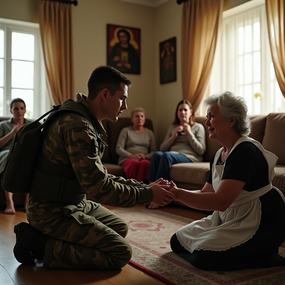 A férfi arca előbb megkeményedett, majd megremegett benne valami. Egy pillanat alatt felmérte a helyzetet: az anyja térden, kezében felmosórongy, az arca verítékes, a ruhája elnyűtt. A kanapén két nő — kényelmesen, szinte uralkodói tartással, mintha ez volna a világ rendje.