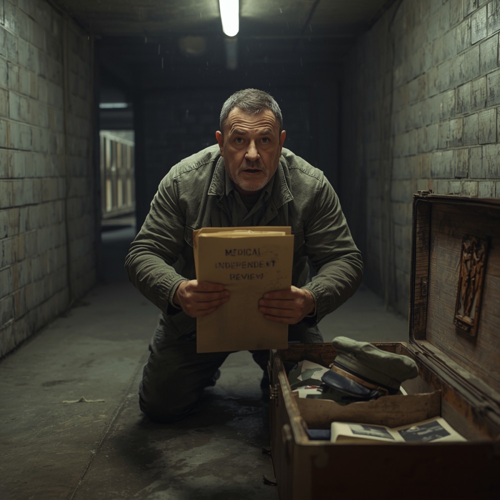 Odabent rendezetlenül hevertek a tárgyaim: összehajtogatott zászló, régi sapka, fényképek, amiknek a széle már megsárgult, és alatta – egy vékony manila mappa. Vastag betűkkel: ORVOSI – FÜGGETLEN ELLENŐRZÉS.
