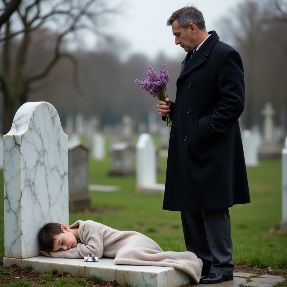 Ám ahogy a sír közelébe ért, megtorpant. Valami nem stimmelt. A megszokott rend, a csendes magány helyett valami furcsa látvány fogadta. Anna sírkövén egy alak feküdt összekuporodva, mezítláb, egy vékony kabátba burkolózva. Egy kisfiú. A hátán alvó madárként összefonódott karok, a kezében egy megsárgult fénykép.