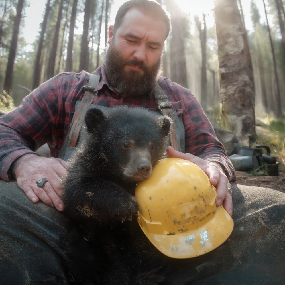 Ott feküdt a földön, összegörnyedve, remegve — egy apró, fekete medvebocs. A bundájára rátapadt a por, a föld, a fűrészpor. A kis orra gyorsan járt, a mellkasa zihált.