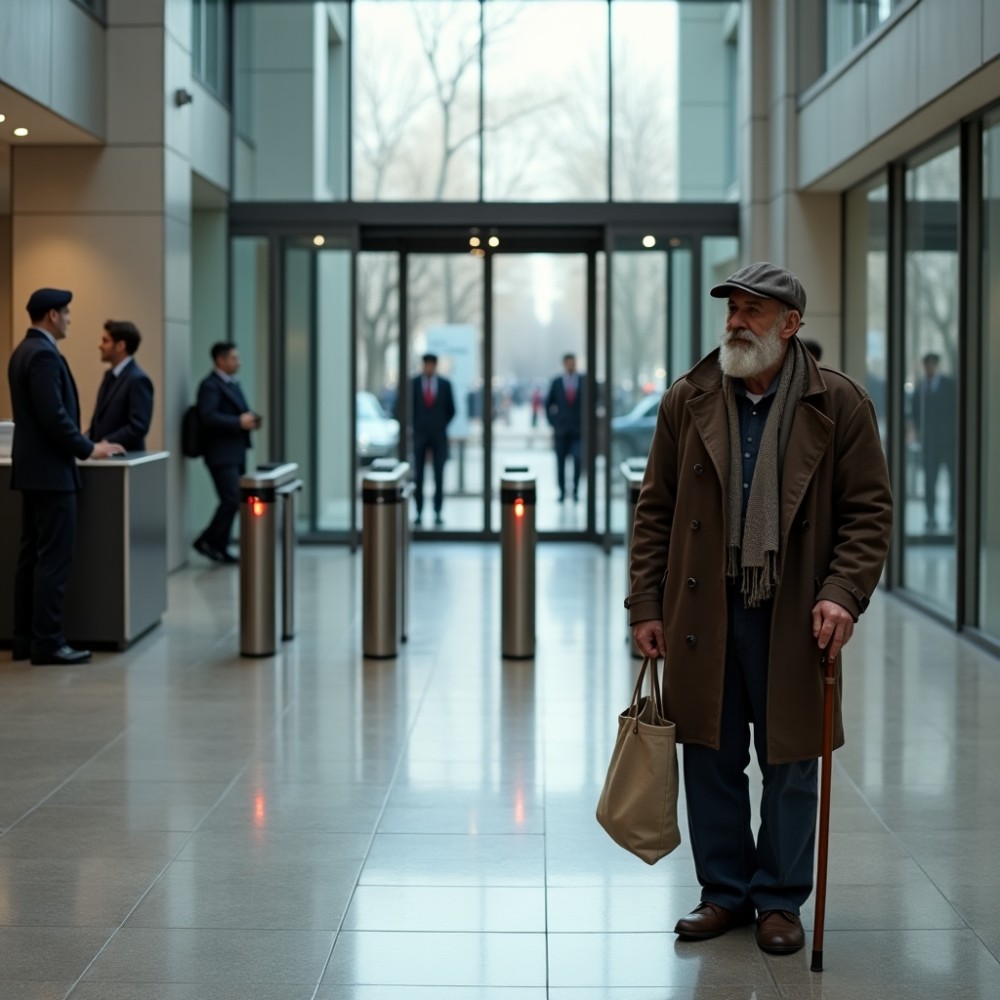 Később egy elegáns kabátos férfi lépett be. A cipője csillogott, a haja frissen vágott, a kezében aktatáska. Amikor meglátta az öreget a széken, egy pillanatra megállt, mintha valami nem illene a képbe, aztán a portáshoz lépett.
