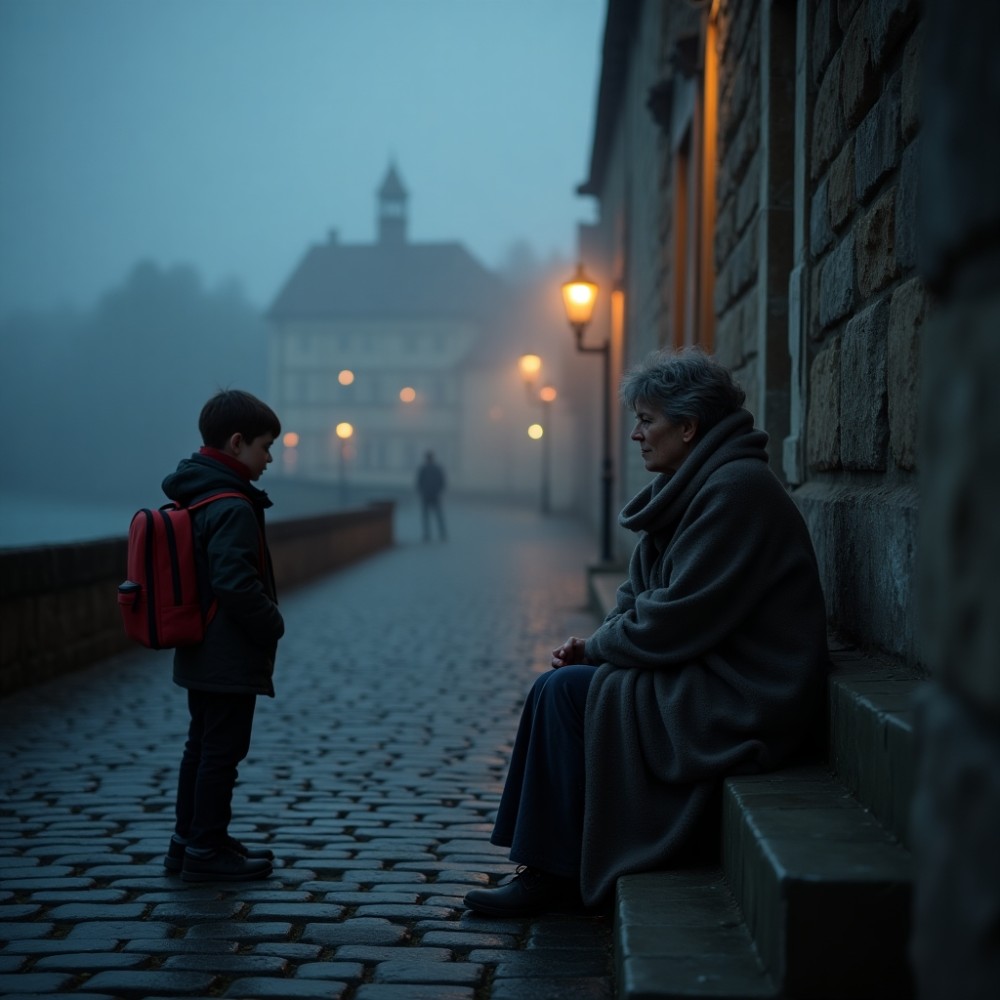 A kőlépcső mellett, ahonnan a part felé lehetett lesétálni, egy nő ült. Vastag kendőbe burkolta vállát, de az ujja végén remegve kapaszkodott a kendő szélébe. Arca halvány volt, szemei mélyen ültek, mintha sokkal többet láttak volna annál, mint amennyit egyetlen élet elbír.