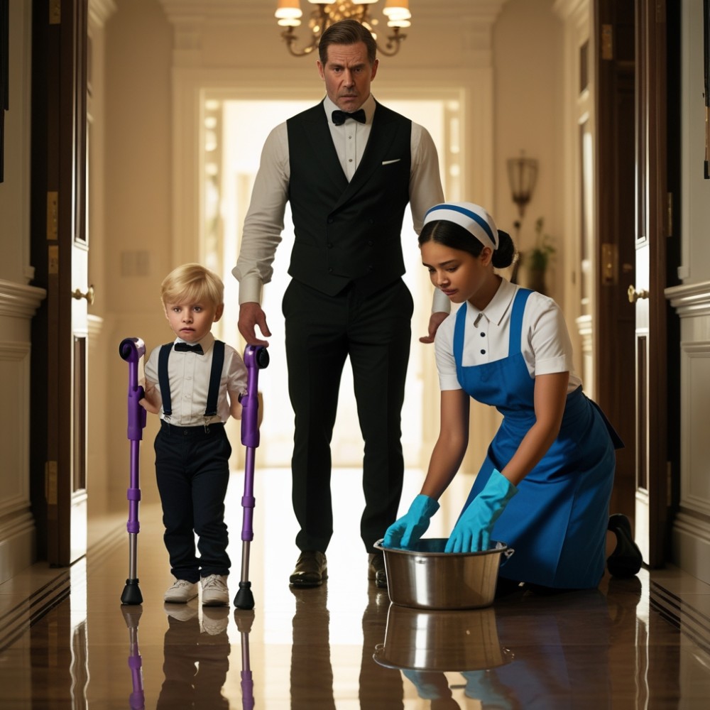 A padló közepén, kék munkakötényben térdelt Szilvi, a huszonéves házvezetőnő, aki fél éve dolgozott náluk. Kezében rongy, mellette egy tál meleg víz. A lámpa sárgás fénye csillogott a frissen felmosott padlón.