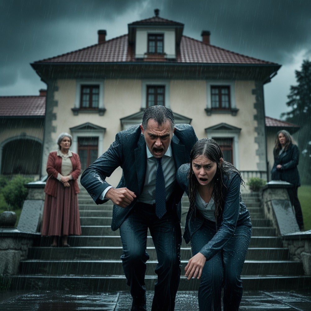 A bejárati ajtónál kilökték. A hideg szél az arcába csapott, az eső pedig percek alatt bőrig áztatta.