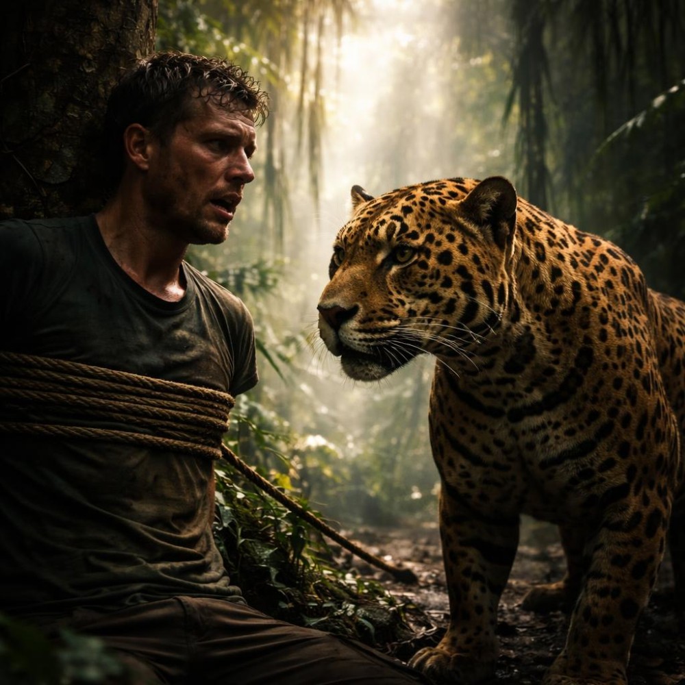 A jaguár lassan lehajtotta a fejét, és megszimatolta a kötelet, majd Ádám karját. Az orra hozzáért a bőréhez, hideg volt és nedves, mégsem volt benne agresszió. Az állat megállt egy pillanatra, mintha döntést hozna, aztán hirtelen ráharapott a kötélre. Ádám teste megfeszült, de nem a fájdalom miatt. A rostok recsegni kezdtek, a kötél megfeszült, majd kissé engedett. „Ez… mi?” – suttogta, de a hangja alig hallatszott. A jaguár újra rántott egyet, erősebben, és most már egyértelmű volt: nem támad, hanem dolgozik.