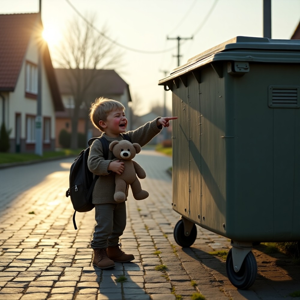 De az ajtó becsukódása után még hallatszott a sírás. Nem hisztéria. Egyfajta megadás. A kisfiú leült a földre, hátát a kukának vetette, és csak nézett maga elé. A plüsskutyát a mellkasához szorította. Mintha elfogyott volna minden hite.