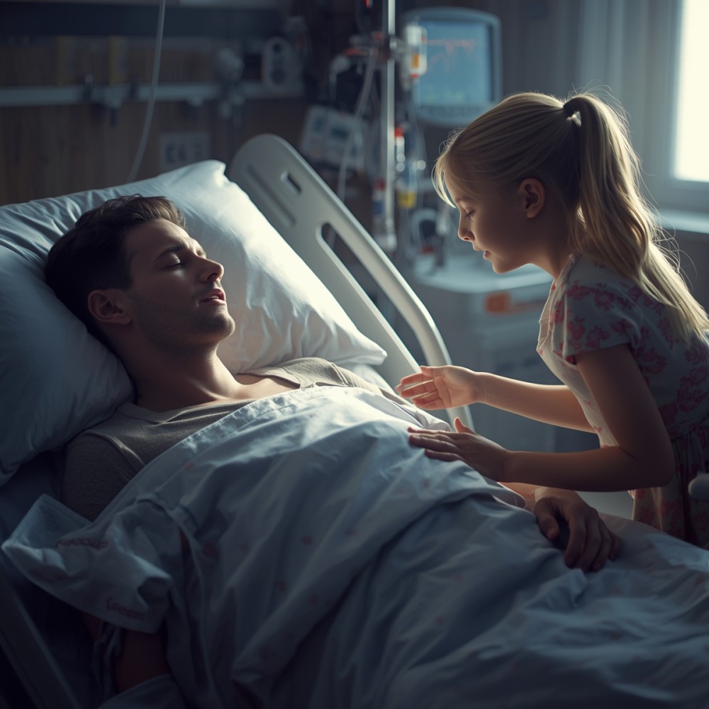 A férfi lassan, vontatott mozdulattal oldalra fordította a fejét. A tekintete még homályos volt, de felismerés csillant benne, amikor meglátta a kislányt.