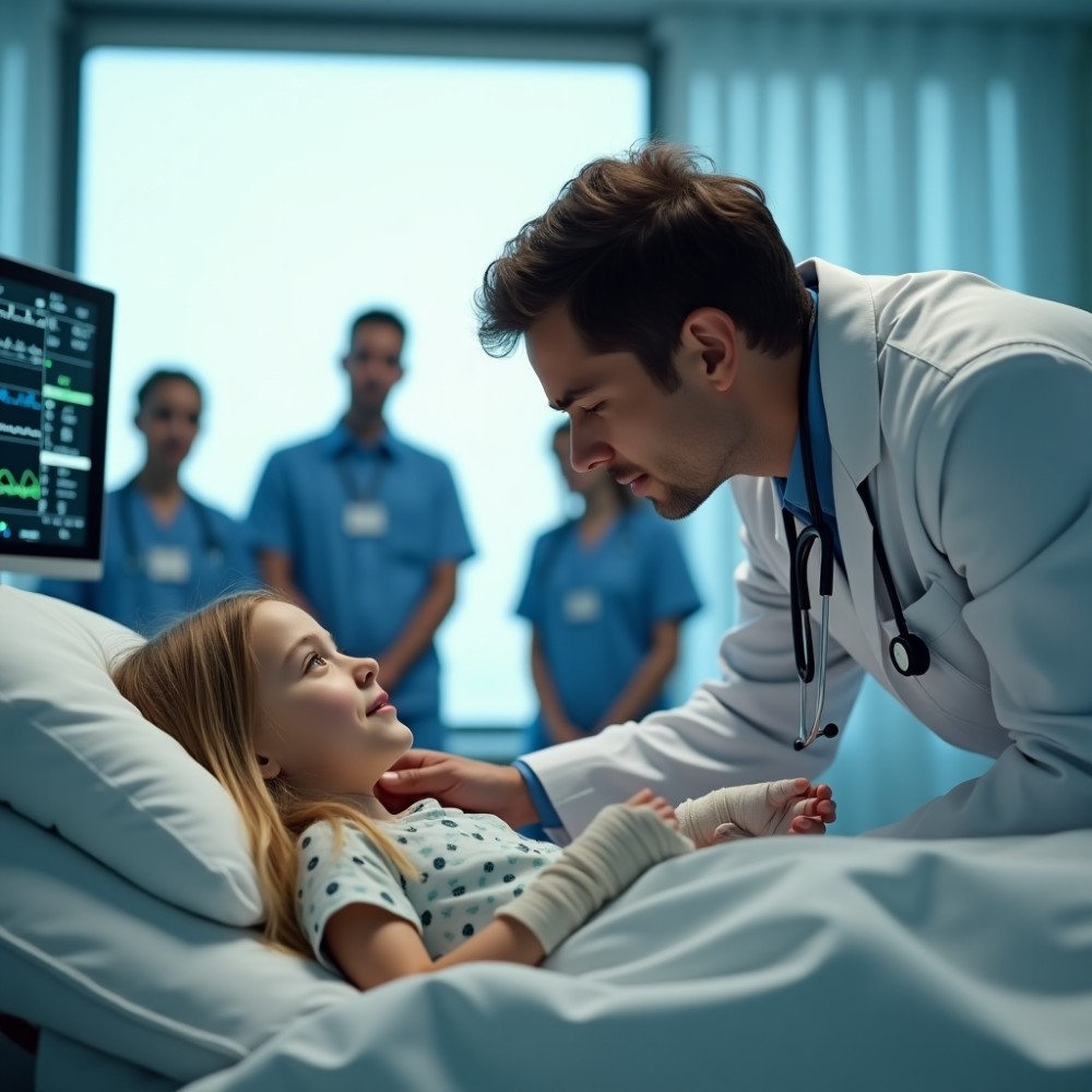 A 213-as szobában ott feküdt Vera, törékeny alakja szinte elveszett az ágy körüli csövek és műszerek között. A kézfejei hatalmas, fehér bandázsokba bugyolálva, a karjai rögzítőpárnákra helyezve. Az arca redves volt, az ajkai megremegtek, amikor meglátta az apját.