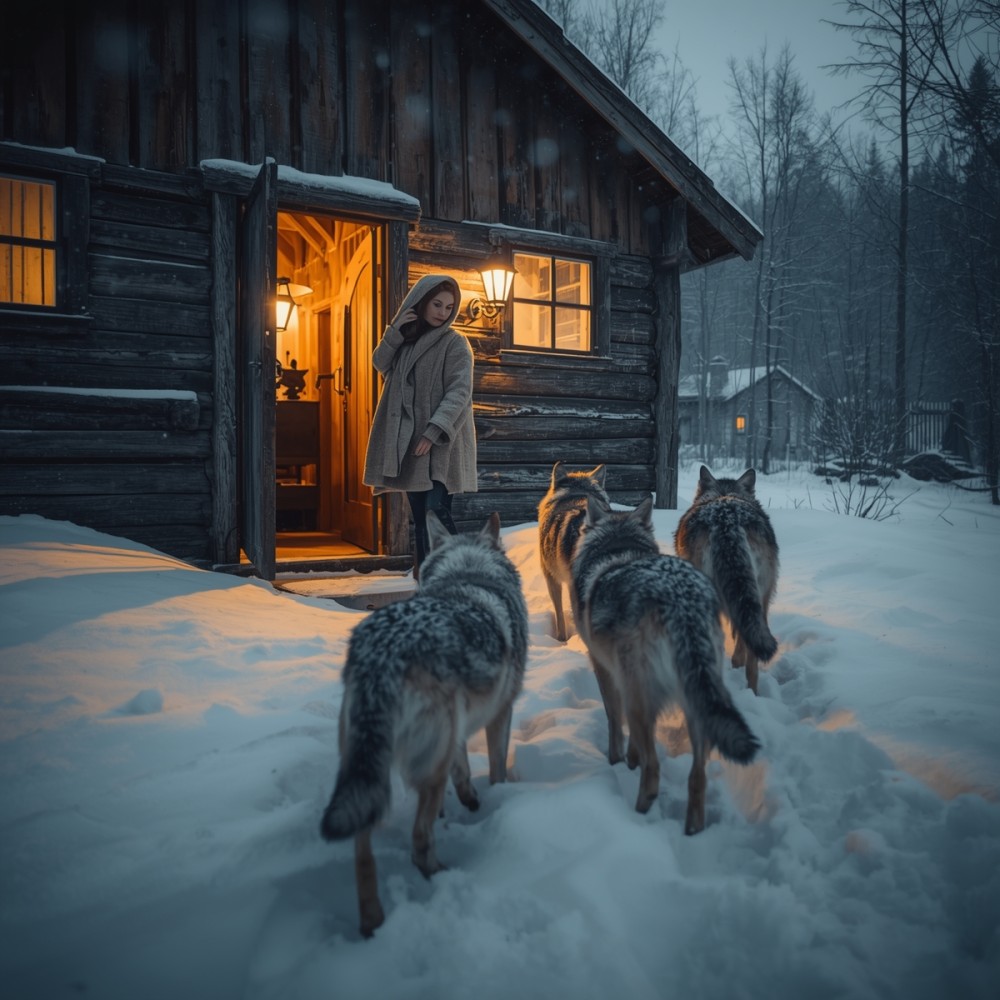 Négy farkas állt az ajtó előtt. Nem rohangáltak, nem ugrottak egymásnak. Csak álltak, egyenesen a házra szegezve tekintetüket, és bundájukra ráfagyott a dér. A mellkasuk lassan emelkedett-süllyedt, mintha minden lélegzetvétel erőfeszítés lenne. A szemükben nem volt vadság – inkább valami mély, fáradt éberség.
