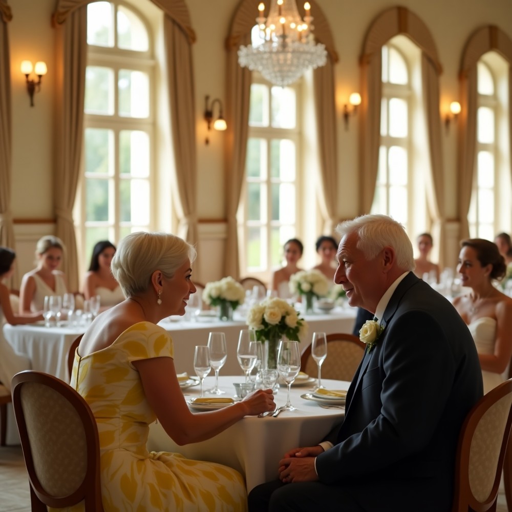Az esküvő napján a bálterem ragyogott: kristálycsillárok, hófehér székek aranyszalaggal átkötve, hosszú asztalok, amelyeken mintha sosem fogyott volna el a virág. Az egész gyönyörű volt — és teljesen idegen.
