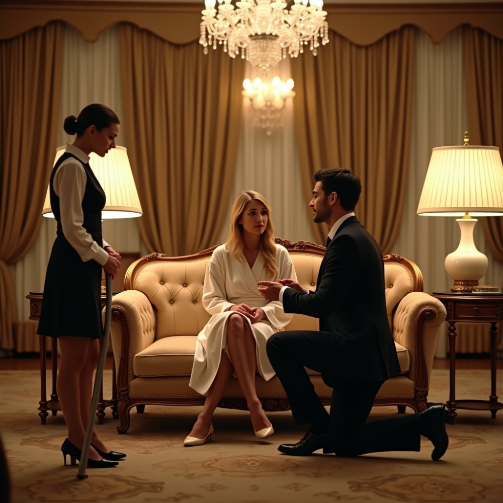 A látvány elsőre kaotikus volt: felborult pezsgőspohár az asztalon, szétszórt ruhák a szőnyegen, a levegőben nehéz, édes parfüm. A kanapén egy fiatal nő ült, fürdőköpenybe burkolózva, mezítláb, a körmei frissen festve, mintha nem is ebben a valóságban élne. Márk előtte térdelt, ingje kigombolva, kezében egy apró, fekete doboz.