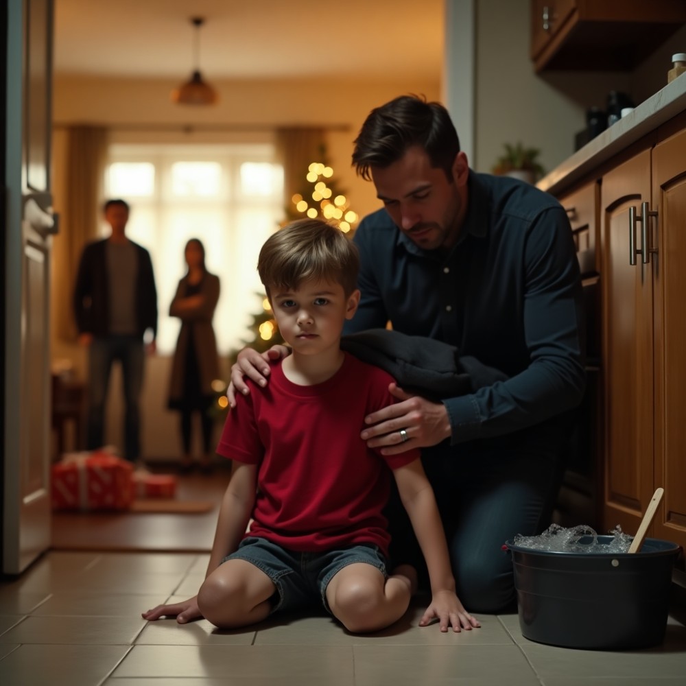Ahogy beléptem, megláttam a fiamat a konyhakőre kuporodva. Egy vödör szappanos víz mellette, kezében kefe, a pizsamafelsője vizesen a mosogató mellett, zoknija teljesen átázott. Remegett.
