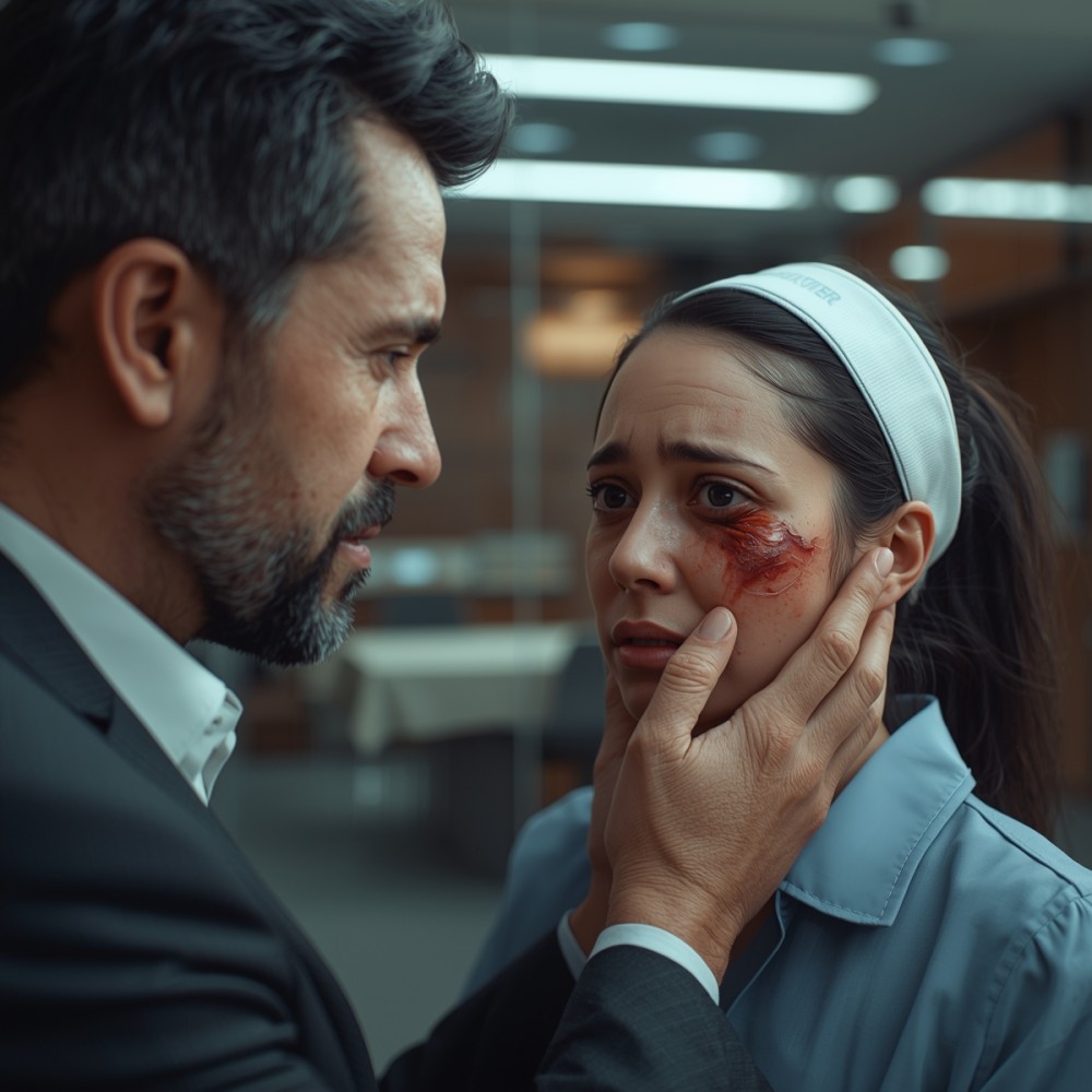 A férfi egy pillanatig nem szólt, csak nézte a sérülést a szeme körül. A nő megérezte ezt a tekintetet, és reflexből oldalra fordította az arcát.