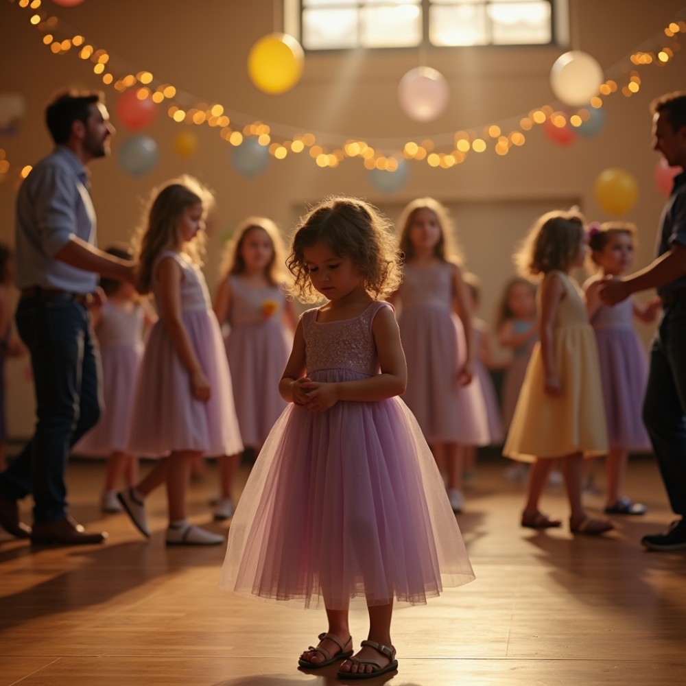 A tánctér fényei alatt Lilla lépései eleinte bizonytalanok voltak, mintha minden mozdulatnál ellenőrizné, valóban ott van-e mellette az apja. A férfi nem siettette, nem próbált látványos forgásokat, csak egyszerűen igazodott hozzá, és hagyta, hogy a kislány tempója vezesse őket. A zene lassú volt, kiszámítható, és ebben az egyszerűségben valami megnyugtató húzódott meg. Lilla ujjai már nem szorították görcsösen a ruháját, hanem az apja kezét fogták, óvatosan, de egyre biztosabban. Időnként felnézett rá, mintha újra és újra meg akarná jegyezni az arcát, a hangját, azt, ahogy ráfigyel.
