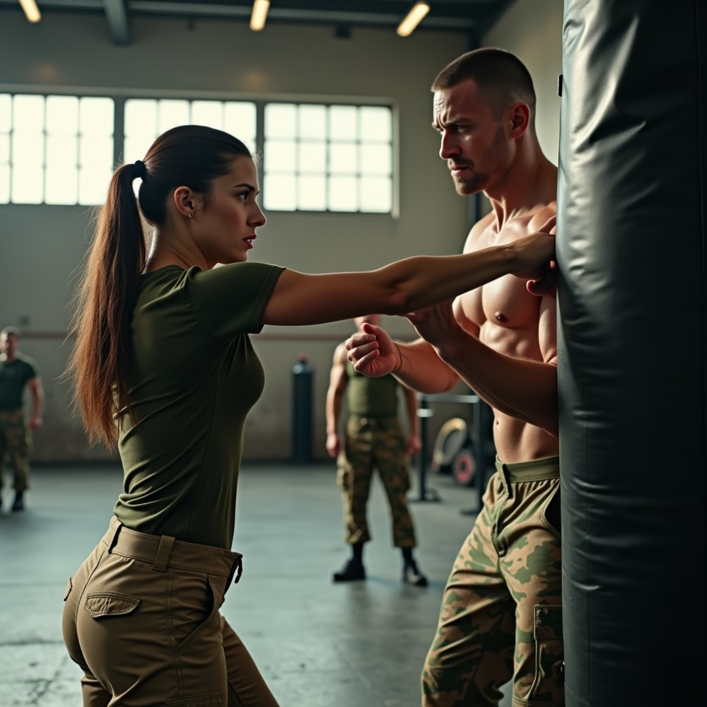 A tatai laktanya edzőterme délutánonként mindig ugyanúgy zsongott: vas csattant a padlón, a futópadok monoton zümmögése összefolyt a katonák rövid, fáradt nevetéseivel. A levegő sűrű volt az izzadtságtól és a gumiszagú kesztyűk tompa szagától, mintha mindenki ugyanabban a ritmusban létezne itt, ugyanazzal a céllal. A fal melletti bokszzsáknál azonban valaki kilógott ebből az egyhangúságból. A lány mozdulatai nem kapkodtak, nem volt bennük bizonyítási vágy; minden ütés ugyanazzal a csendes pontossággal érkezett, mintha nem is a többieknek, hanem saját magának dolgozna. Néhányan oldalra sandítottak rá, de gyorsan visszafordultak, mintha kényelmetlen lenne a látványa. A suttogás napok óta körülötte forgott, de senki nem szólt hozzá közvetlenül. Ő pedig nem kérdezett, nem kereste a társaságot. Csak ütött, egyenletesen, kitartóan, mintha ez lenne az egyetlen biztos pont.
