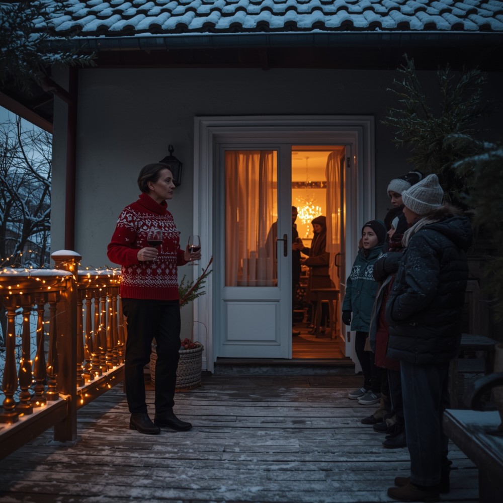 A bejárati ajtó mögül hangos kacagás hallatszott, majd valaki hirtelen kinyitotta. Réka állt ott, Dóra volt anyósa, vörös boros pohárral a kezében, karácsonyi kötött pulóverben.