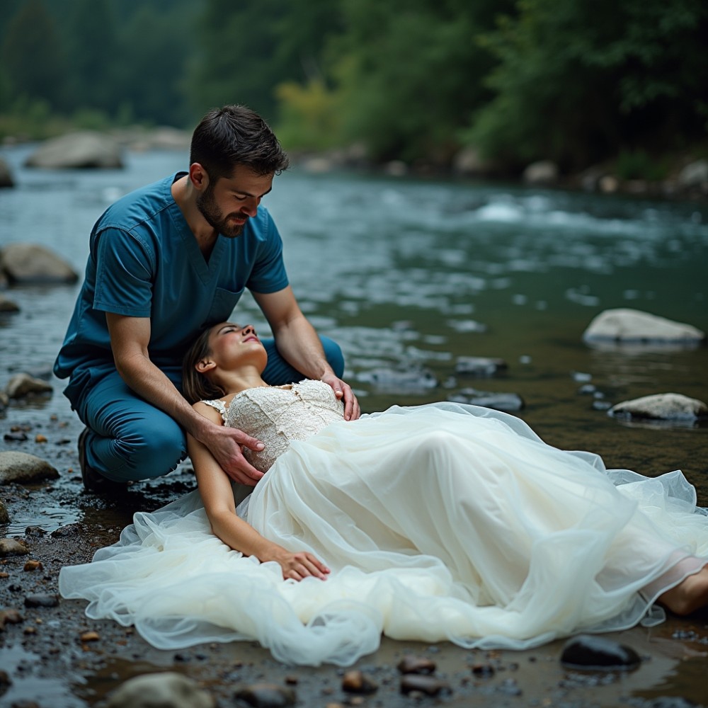 A sürgősségi osztály fényei élesek voltak, már-már bántóan tiszták a folyó tompa, zöldes félhomálya után. Ahogy betoltak, a zaj egyszerre erősödött fel: lépések, rövid utasítások, fémes csattanások. Több kéz nyúlt felém, rutinos mozdulatokkal vágták le rólam a vizes ruhát. A szatén ellenállt, a csipke szakadt, a gyöngyök apró koppanásokkal hullottak a padlóra. Egy pillanatra pánik tört rám, amikor a derekamhoz értek, de András hangja azonnal ott volt.