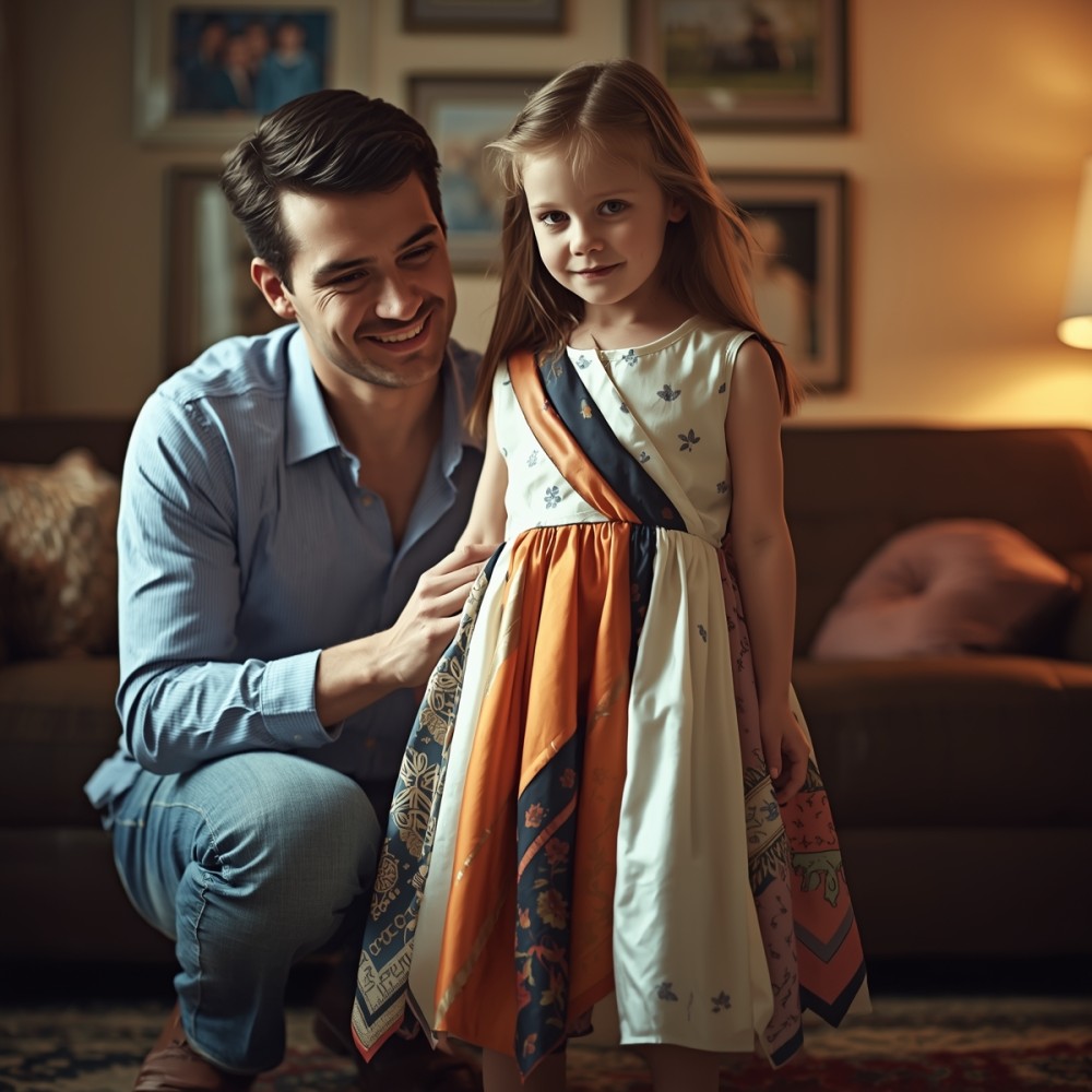 A harmadik éjszaka végére már kirajzolódott valami. Nem volt tökéletes: az egyik varrás picit hullámos lett, máshol a minta nem találkozott pontosan, de amikor felakasztottam a szekrényajtóra, és hátraléptem, megálltam. Ruhának látszott. Olyannak, amit egy gyerek felvehet, és büszkén mutogathat. Reggel, mielőtt Melissa felébredt volna, még egyszer végigsimítottam rajta, aztán visszatettem a nappaliba a kanapéra. Amikor kilépett a szobájából, még álmos volt, a haja össze-vissza állt, és dörzsölte a szemét. „Apu…?” – mondta halkan, aztán meglátta a ruhát. Közelebb lépett, megérintette az anyagot, mintha attól félne, hogy eltűnik.