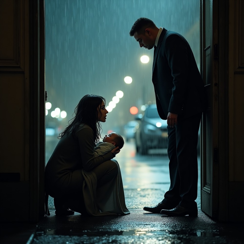 Kócos barna haja csapzottan tapadt az arcára, kabátja átázott, a karjaiban pedig egy aprócska, alig pár hónapos csecsemő feküdt. A kisfiú mellkasa egyre ritkábban emelkedett meg, mintha maga a levegő is elfogyott volna körülötte.