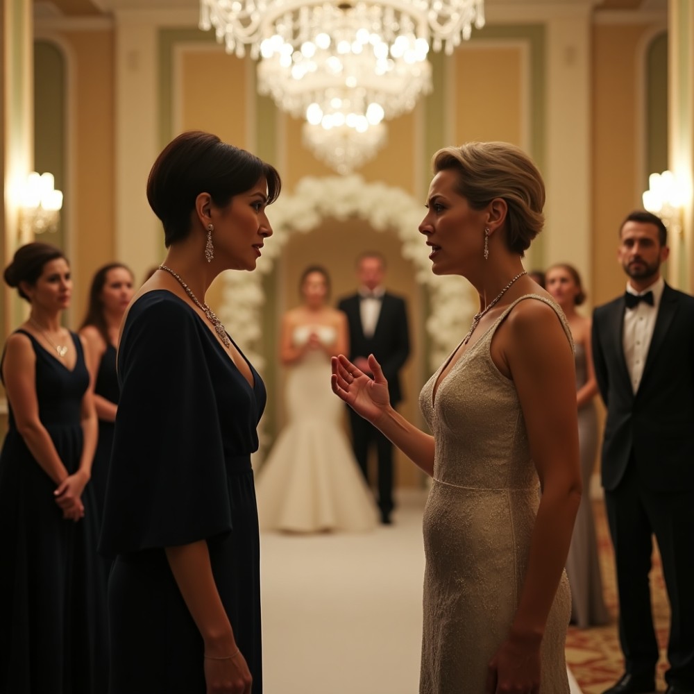 A vendégek lélegzetvisszafojtva figyeltek. Valaki a terem másik végében megköszörülte a torkát, mintha oldani akarná a feszültséget, de nem sikerült.