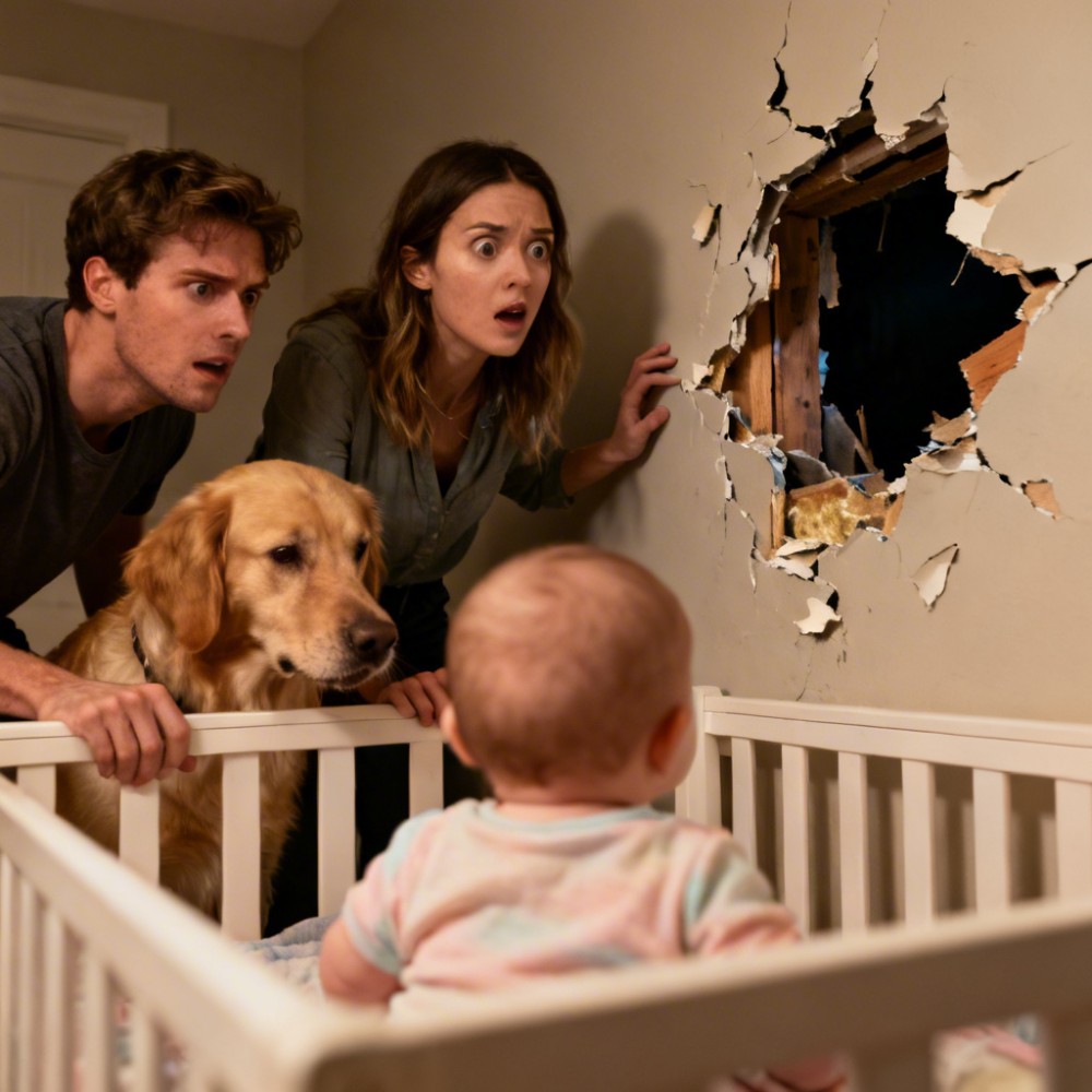 A kutyánk, Daisy addig nyugodt, szinte túl türelmes golden retriever volt, az a fajta, amelyik órákig elüldögél a kiságy mellett. Aztán egyik napról a másikra megváltozott. Amikor kimentem a gyerekszobából, kaparászó hangot hallottam, visszarohantam, és mindig ugyanaz a kép fogadott: Daisy a falnál állt, pont a kiságy mögött, és eszeveszett erővel tépte a gipszkartont. „Hagyd abba! Mi ütött beléd?” – rántottam el a nyakörvénél fogva, de alig tudtam megfékezni. Másnapra újra ott volt, mintha semmi más nem létezne számára, csak az a pont a falban. Feltettem egy rácsot, becsuktam az ajtót, de valahogy mindig visszajutott, és kezdte elölről. A mancsai kisebesedtek, a körmei véresre koptak, én pedig egyre idegesebb lettem. „Ez így nem mehet tovább” – mondtam este a férjemnek telefonon. „Valami baja van.” Ő csak annyit felelt, hogy majd hétvégén megnézzük, biztos unatkozik.
