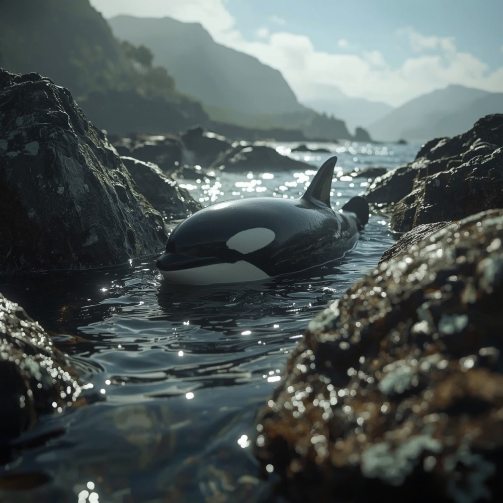 A fiatal orka — a környéken csak “Feketeuszony” néven emlegették — a zátonyok közé szorult. Valószínűleg a családja után úszott a sekély vízbe, amikor a hullám visszahúzódott, és most a teste félig a szárazon hevert. A bőre kiszáradt, a levegő perzselte. Időnként próbált mozdulni, de minden moccanás csak újabb sebet ejtett rajta.