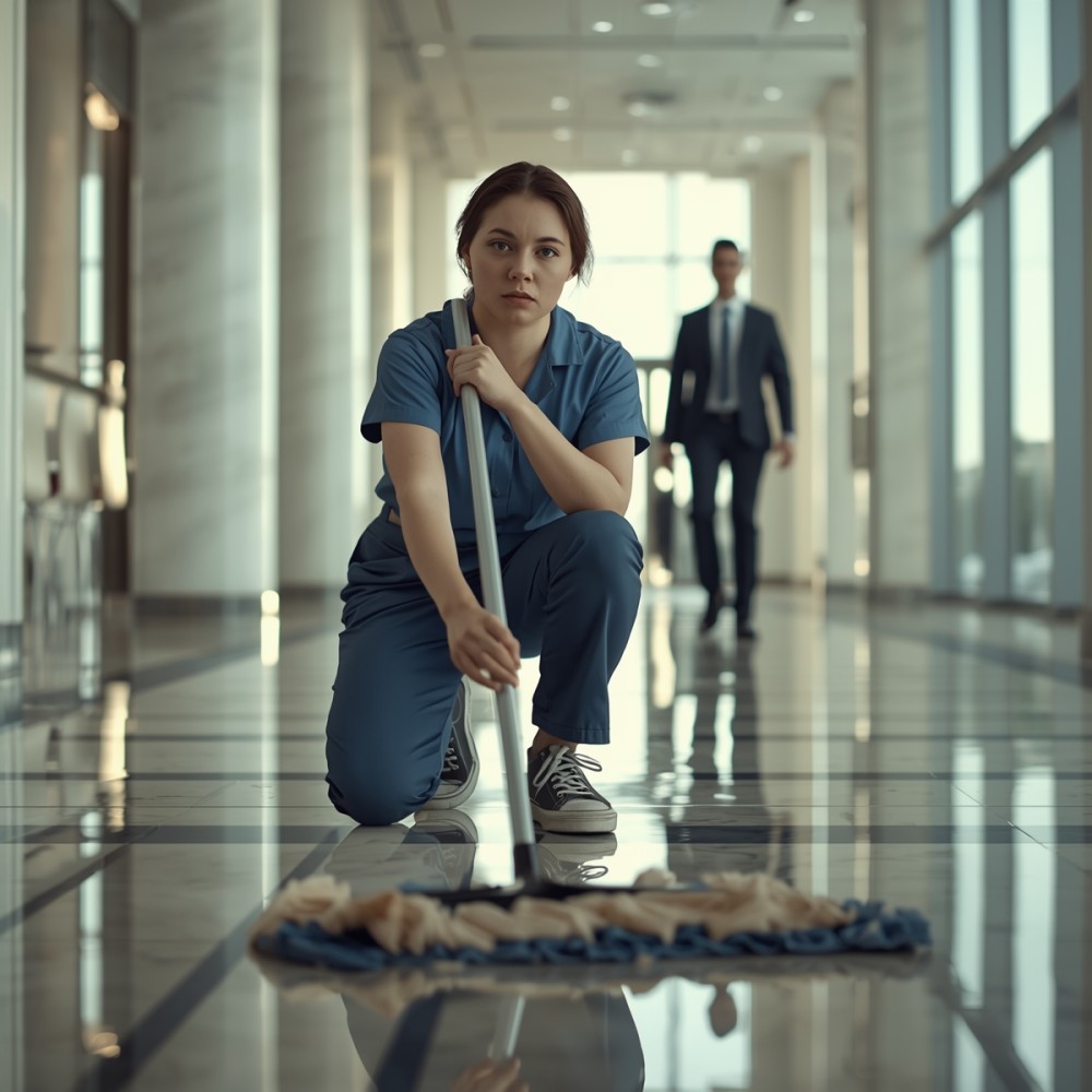 Egy pillanatig mindketten hallgattak. A hatalmas előcsarnok üres volt, a forgóajtón túl pedig már megjelent az első korán kelő irodista alakja az utcán. Anna lehajolt, kicsavarta a felmosót, és újra végighúzta a márványon. A cipő talpa halk csattogással nyílt szét, ahogy lépett.