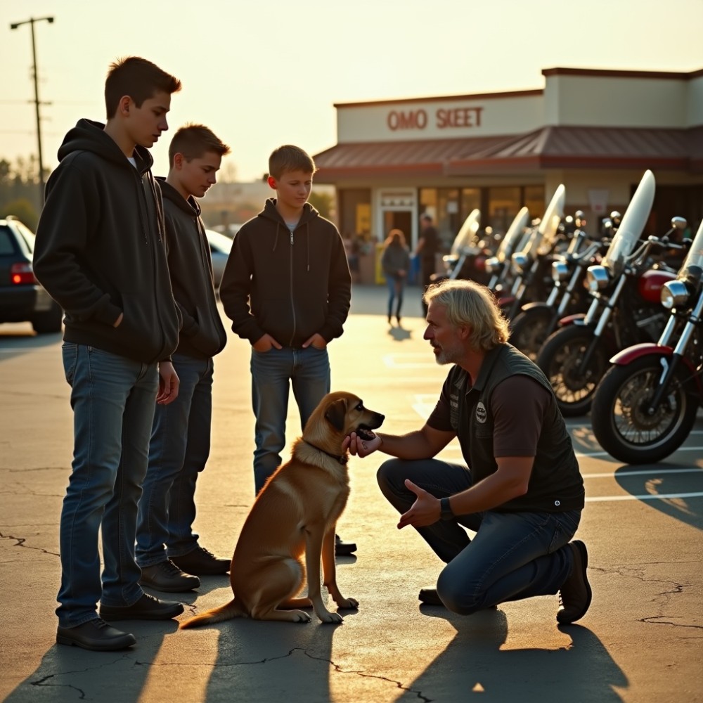 A kutya összerezzent, majd hátrált, de nem futott el. Talán túl éhes volt, talán túl reménykedő. A fiúk tekintete egyszerre sötétedett el — a veszélyes unalom lassú tüze gyúlt fel bennük.
