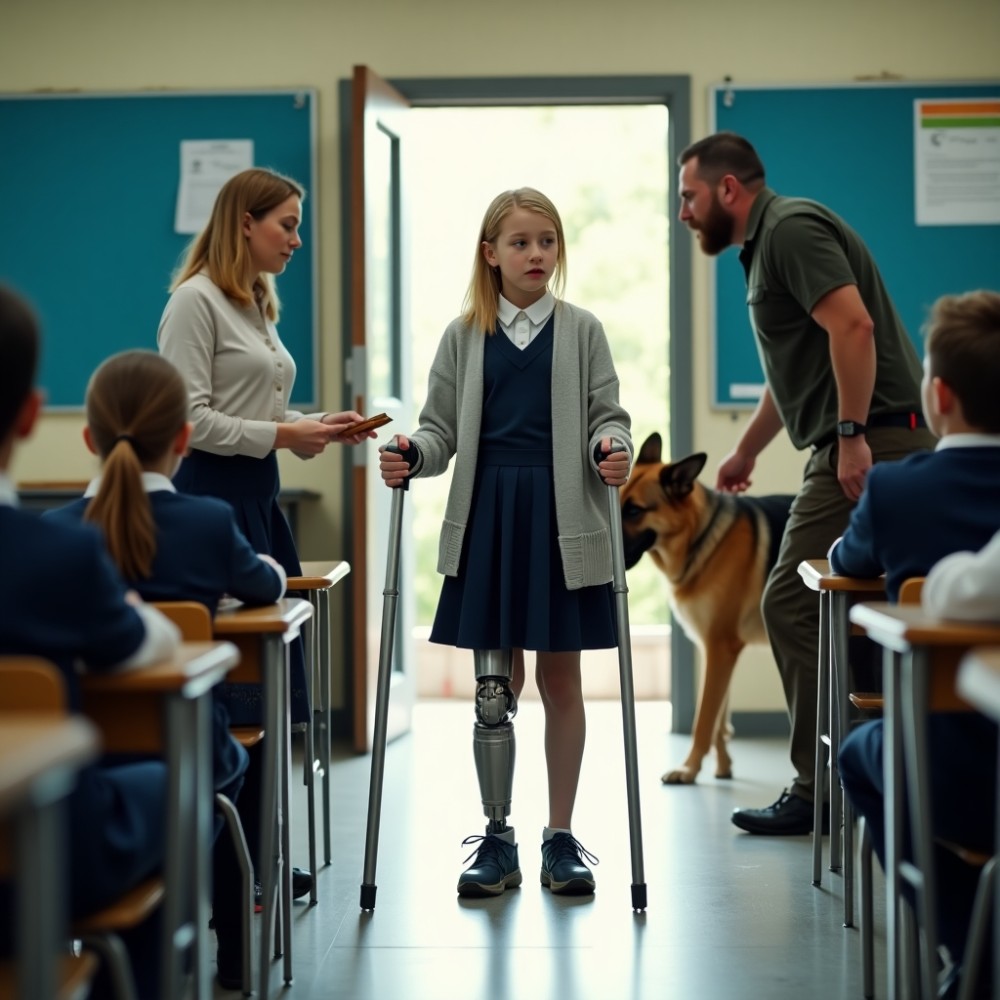 A hátsó ülésen Anna, a lánya, a táskáját igazgatta. Nyolcéves volt, törékeny, szőke haja copfba kötve. A bal lábán fényesen csillant a protézis fémrésze, ahogy megmozdult. A mankók halkan koppantak az aszfalton, amikor kiszállt.
