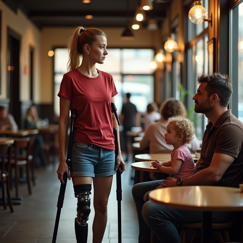 Éppen kortyolt egyet a kávéból, amikor megakadt a szeme egy fiatal nőn, aki a presszó ajtaja előtt toporgott. Karcsú volt, rövid fekete kabátja alatt melegítőnadrágot viselt, haja lazán kontyba csavarva. A jobb kezében egy összecsukható fémbotot tartott, bal lábán pedig láthatóan valamiféle ortézis feszült. A mozdulatai óvatosak voltak, mégsem kellettek hozzá másodpercek, hogy Benedek észrevegye azt a belső feszültséget, amely a tekintetében vibrált.