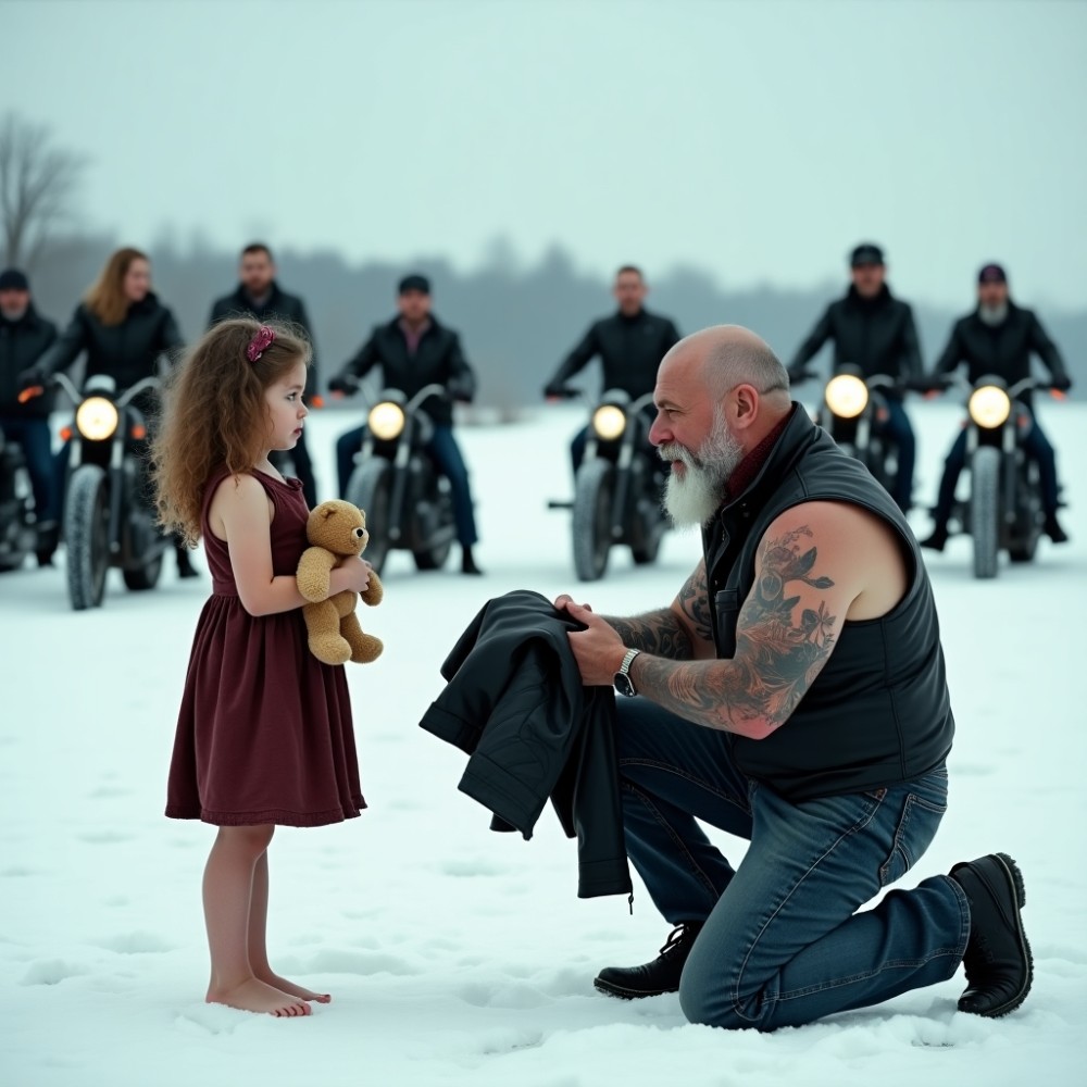 Az öreg motorost, a három férfit, a botot, és a kislányt, aki odarohant, mintha benne lenne a világ utolsó reménye.