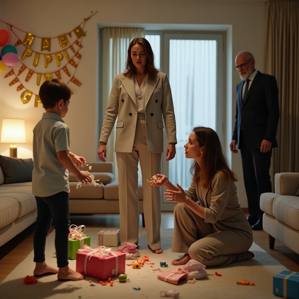 Mielőtt bárki reagálhatott volna, Eszter hirtelen kitépte Bence kezéből a csomagot. Egy pillanat alatt történt. A zöld papír megreccsent, a játék – egy üvegből készült, aprólékosan festett dinoszauruszfigura – kicsúszott, majd a falnak csapódott.