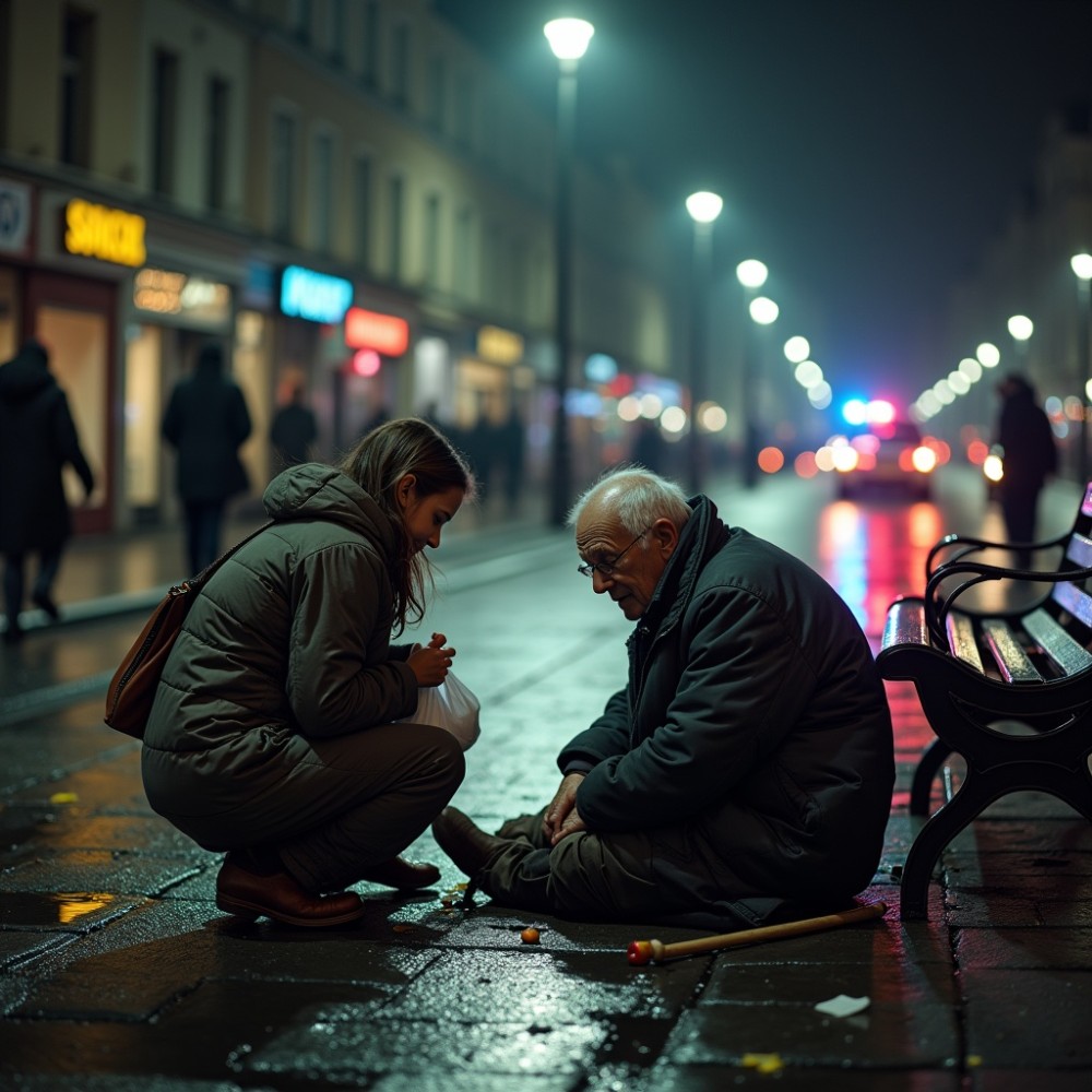 — „Ma… amikor láttam, hogy elesett… nem tudtam csak úgy továbbmenni.” — folytatta a lány. — „Olyan volt, mint… nem is tudom. Mintha valaki engem kért volna meg, hogy maradjak még egy kicsit ember.”