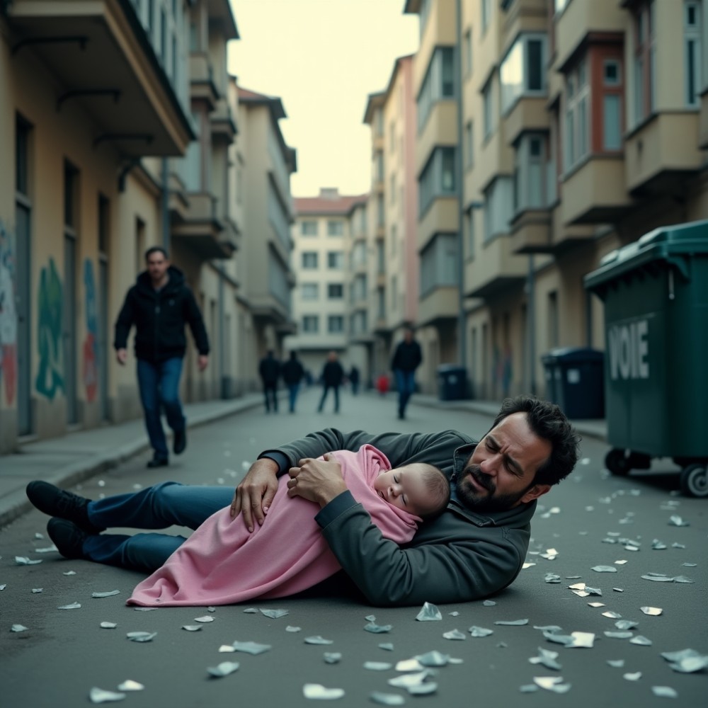 Gergő egyetlen mozdulattal előrelépett, karjait kitárta, és elkapta a gyermeket – vagy inkább úgy lehetne mondani: megpróbálta tompítani a zuhanást. A baba belecsapódott a mellkasába, és a lendületük együtt vitte őket a földre. Gergő feje a járdának csapódott, a hátába belehasított az aszfalt hidege és keménysége, és egy pillanatra minden elsötétült.