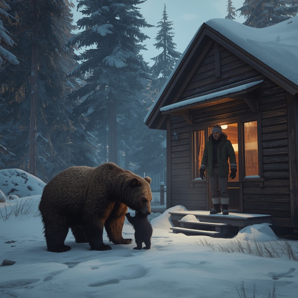 Amikor átlépte a küszöböt, egy pillanatra megtorpant és visszanézett. A medve még mindig ott állt. Nem lépett be a tornácra, nem jött közelebb — mintha láthatatlan határ választotta volna el a házat az erdőtől. A nőstény tekintete nyugodt volt, de feszült figyelemmel követte minden mozdulatát.