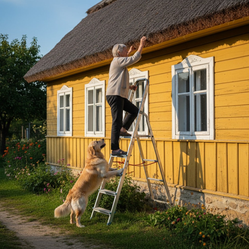 A létrát már előző este kikészítettem a fészer mellé. Amikor elővettem, hideg volt a fém, mintha ellenségesen méregetne, de én akkor is odatámasztottam a fa törzséhez, amilyen stabilan csak tudtam. A kert csendes volt, csak a távolból hallatszott valami bizonytalan, tompa kalapálás – talán a szomszéd szerelt valamit a műhelyében. A kutyám, Bandi, már akkor is ott sündörgött körülöttem, a farkát lassan lengetve, mintha figyelné minden mozdulatomat.