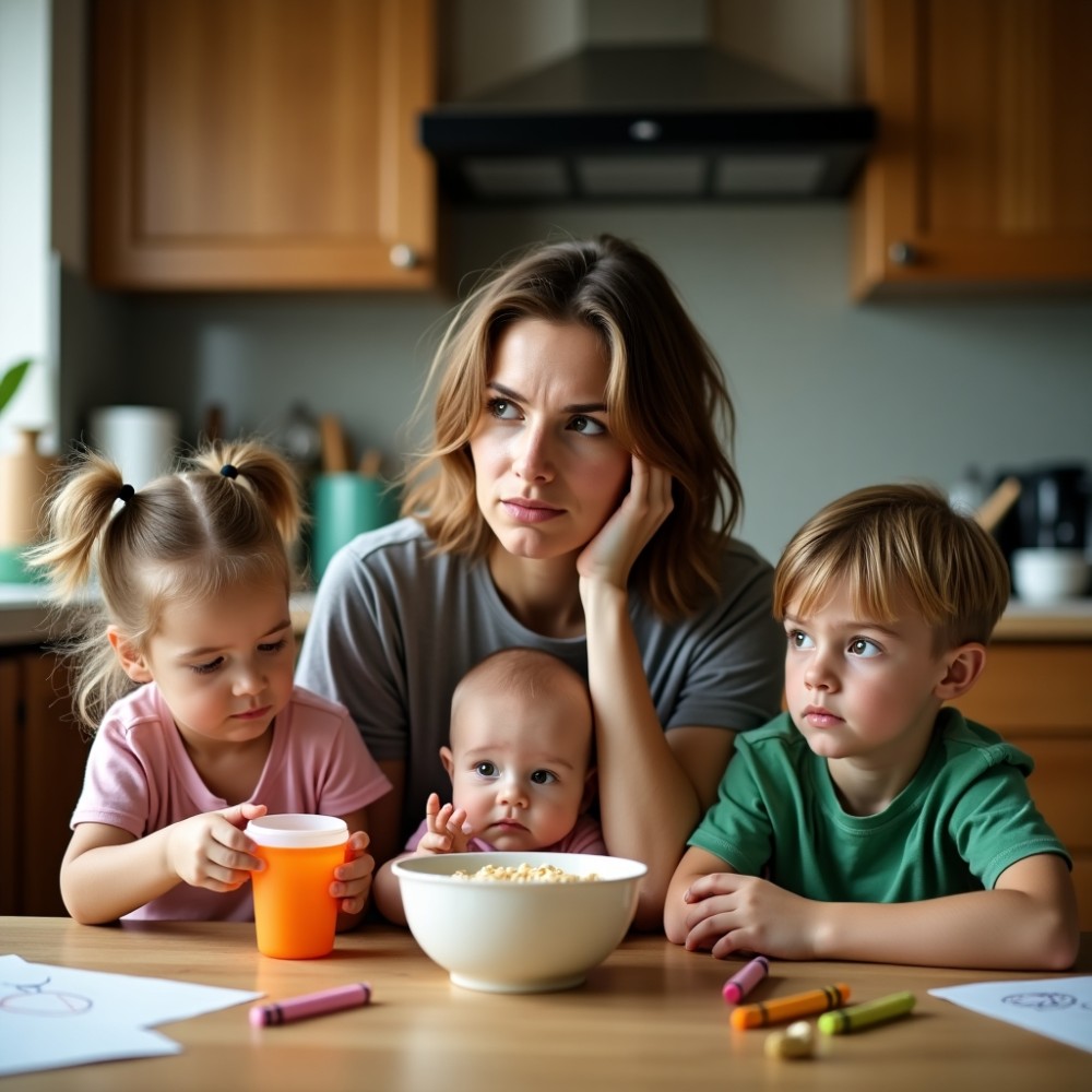 A hátsó ajtón át láttam meg őket. A konyha közepén állt egy nő, a vállán egyik gyerekkel, a másik kettőt próbálta egy kézzel távol tartani a kiömlött liszttől. A haja zsírosan tapadt a homlokához, a szeme karikás volt, mint aki már két hónapja nem aludt rendesen.
