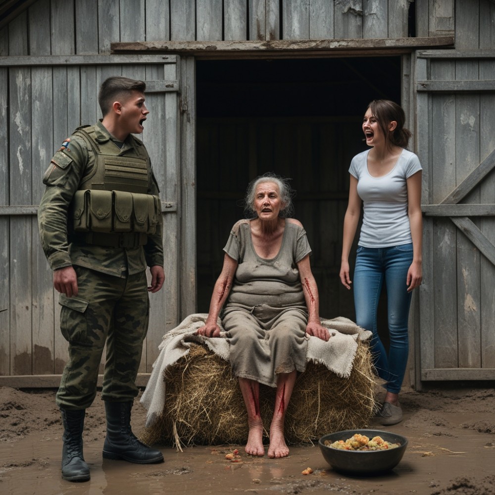 Amint meglátta a katonát, az arca eltorzult, és ösztönösen hátralépett.