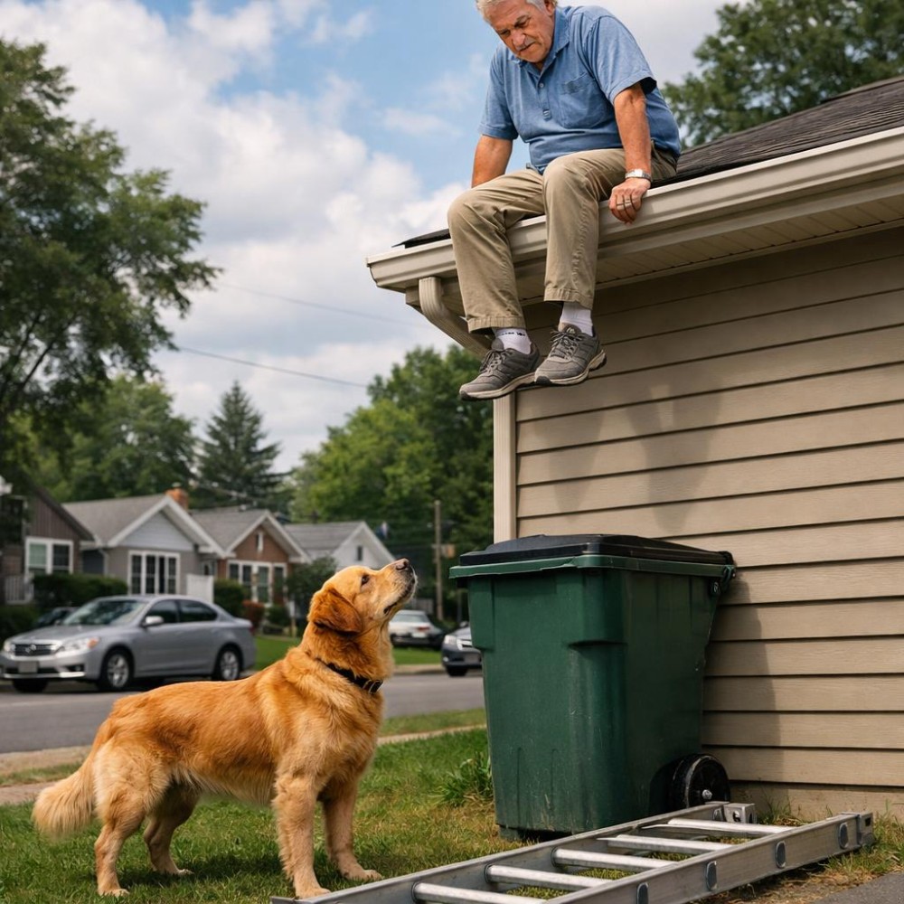 „Jól van, Betyár… maradj ott” – mondta halkan, mintha a kutya jelenléte valahogy biztosabbá tenné a helyzetet. Lassan előrehajolt, egyik lábát óvatosan lelógatta a tetőről, és próbálta felmérni, mennyire van messze a kuka teteje. A cipője orra alig pár centire volt tőle, de az a pár centi most szakadéknak tűnt. László vett egy mély levegőt, megszorította a csatornát, és érezte, hogy nincs több ideje gondolkodni…