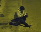 A videófelvételen látszik, ahogy a fiú a járdán hasal a házuk előtt, egy utcai lámpa alatt.