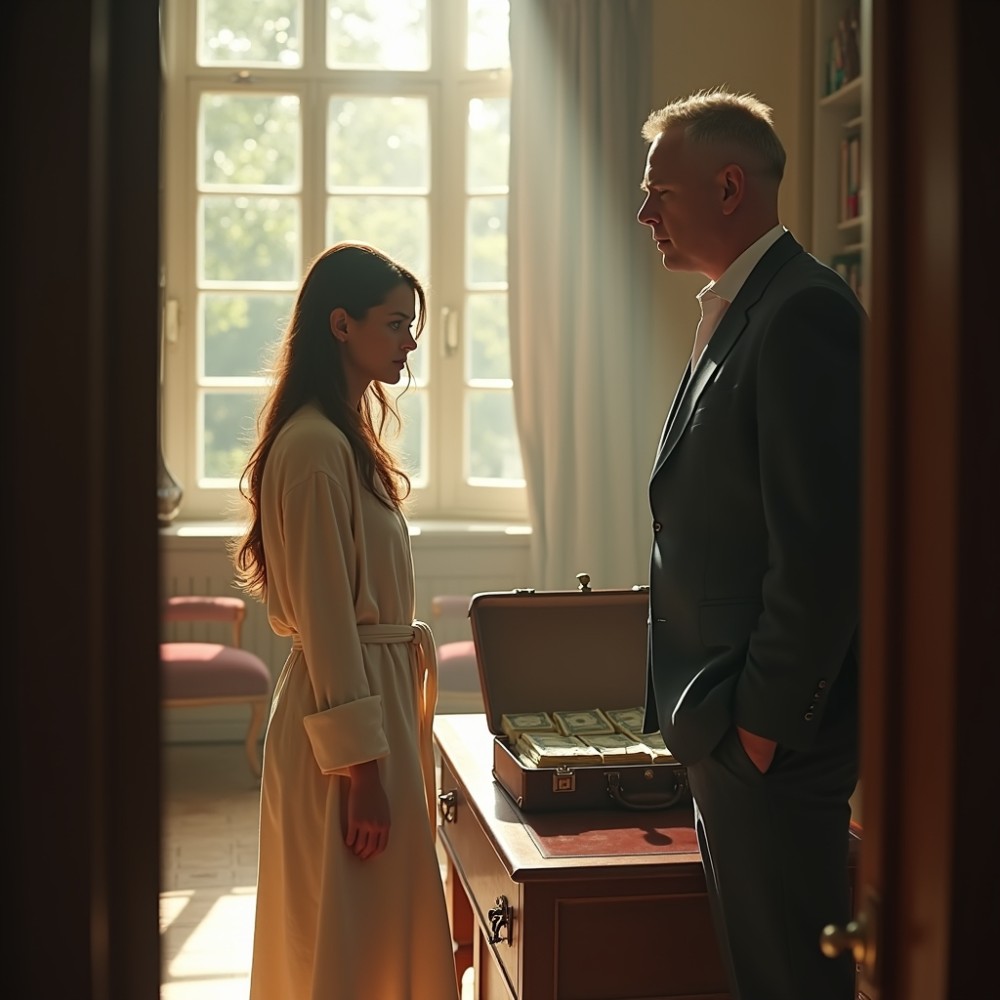 Bence végül lenyomta a kilincset, de csak annyira, hogy az ajtó még éppen ne nyikorogjon, és a résen át belátott a dolgozószobába. A látvány nem volt azonnal értelmezhető, inkább darabokban állt össze benne: Réka nem az elegáns ruhájában volt, hanem egy régi, kifakult köntösben, a haja rendezetlenül hullott a vállára, mintha nem számított volna senkire. Az íróasztalon egy nyitott bőrönd feküdt, benne vastag kötegekbe rendezett pénz, a zöldes árnyalatuk szinte világított a félhomályban. A férfi, aki vele szemben állt, magas volt és széles vállú, az arca kemény, idegen, a hangja pedig most már tisztán hallatszott, ahogy halkan, de határozottan beszélt. „Ez az utolsó részlet, Réka. Több halasztás nincs.” Bence gyomra összeszorult, és egy pillanatra úgy érezte, mintha nem a saját életét nézné, hanem valaki másét, egy jelenetet, amit nem neki szántak.